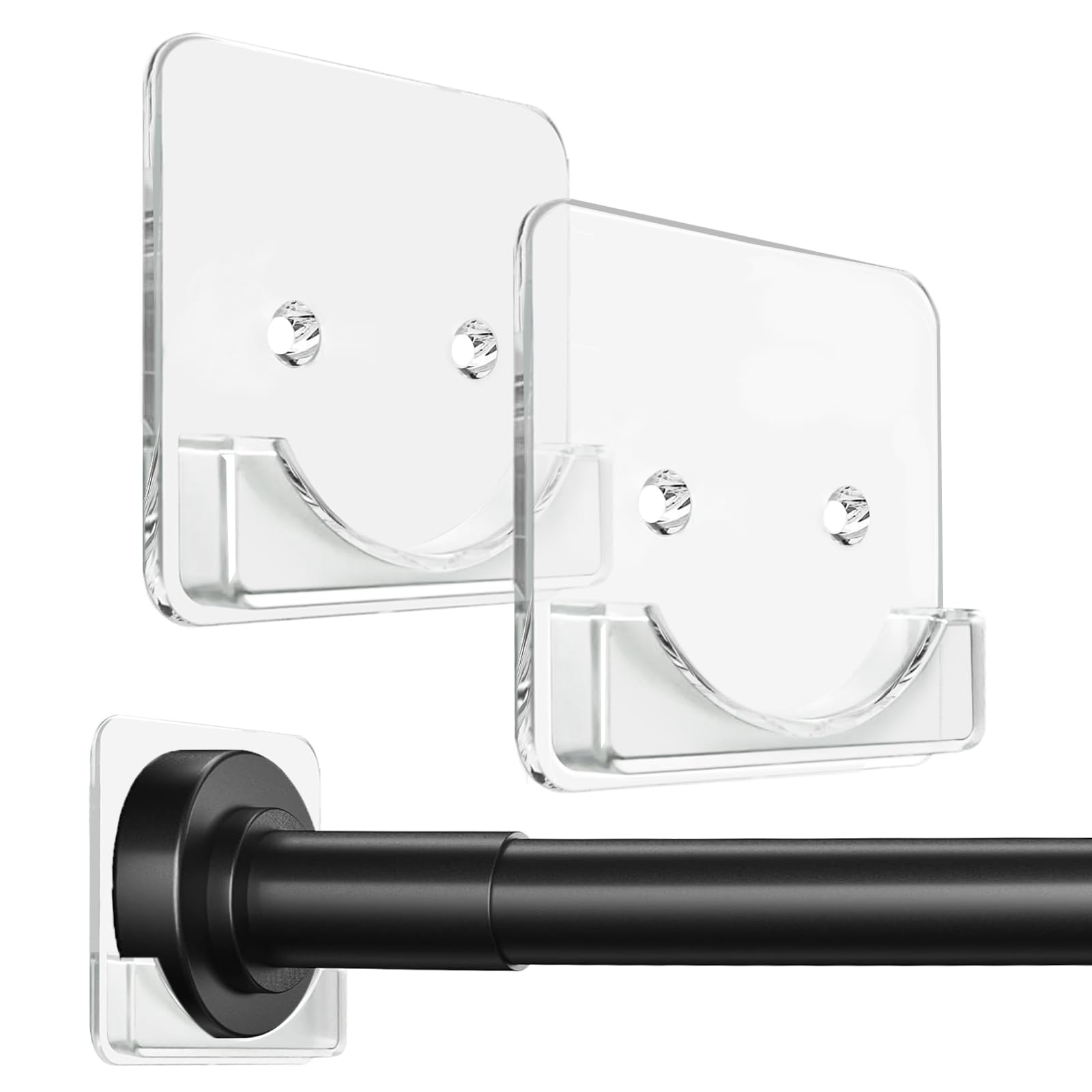 - With its transparent design, this shower curtain rod holder boasts an elegant and contemporary look. The clear appearance not only gives it a sleek aesthetic but also makes it blend seamlessly into various bathroom settings. It's a versatile piece that can complement most interior design styles. Whether your bathroom has a modern minimalist vibe, a classic vintage feel, or a trendy industrial look, this shower curtain holder will fit right in, adding a touch of sophistication to your space.