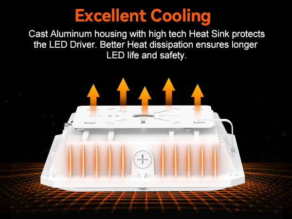 【IP65 Waterproof 】 IP65 waterproof and can work at temperatures ranging from -40°C to 40°C (-40°F to 104°F). This outdoor canopy lights ensures durability and longevity with a lifespan of over 50,000 hours. The light can operate under a current of AC100-277V.