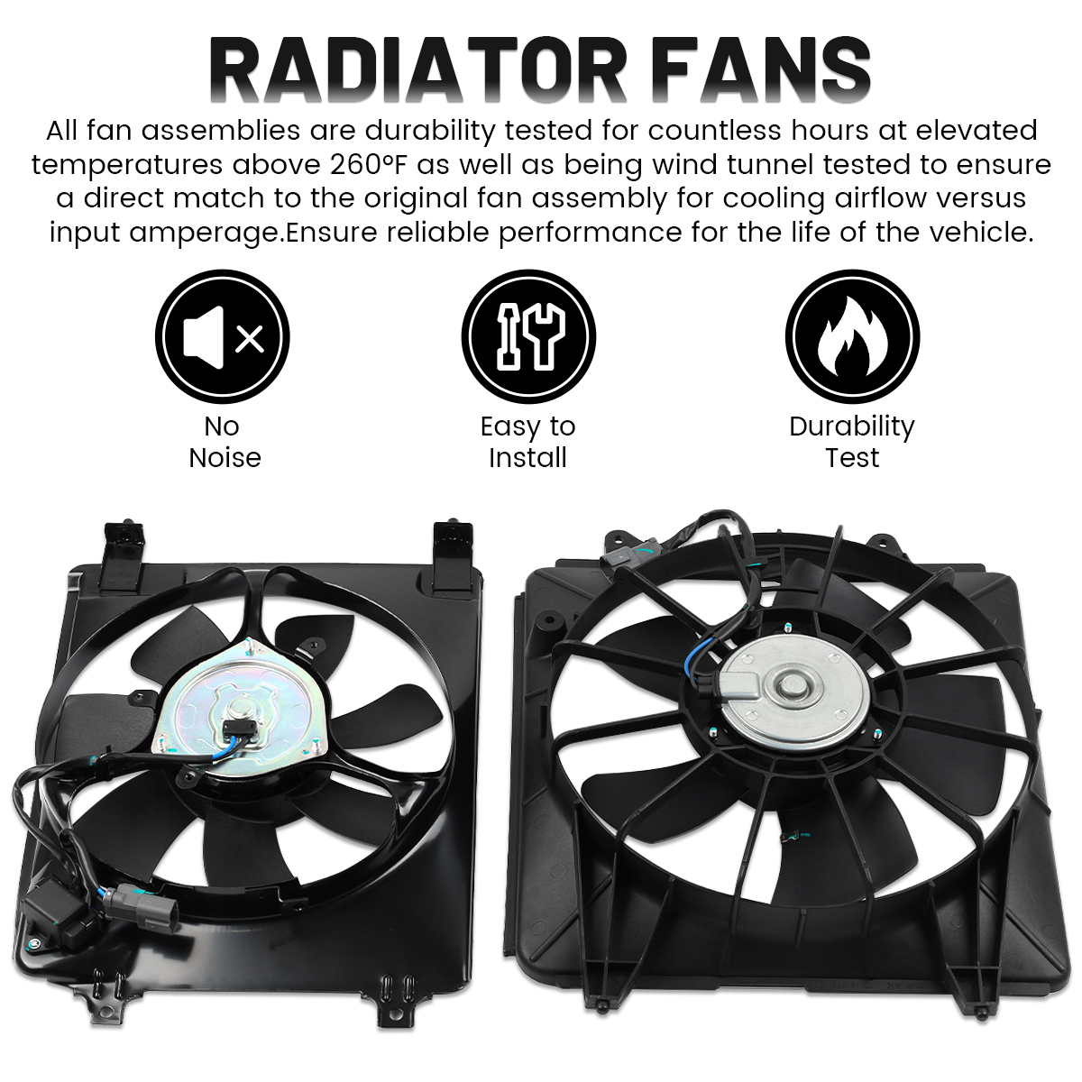 2PC Engine Radiator Cooling Fan Assembly for 2006-2011 Honda Civic 1.8L HO3117100 HO3113124