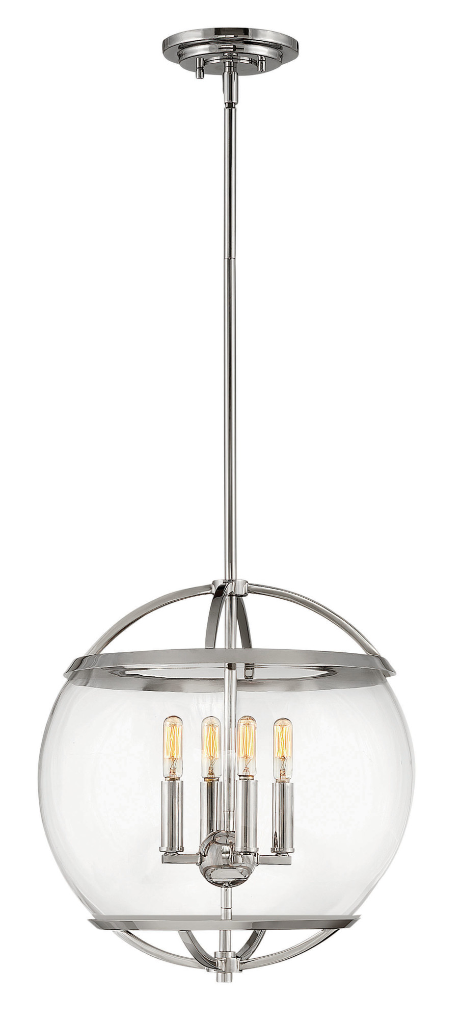 Item DescriptionThe wide glass band featured in Calvin clearly has global appeal, but the sphere of influence does not stop there. The orb is completed by the rounded, open cage on top and bottom to add style and stability. This mid-century modern silhouette encloses a classic candle cluster.