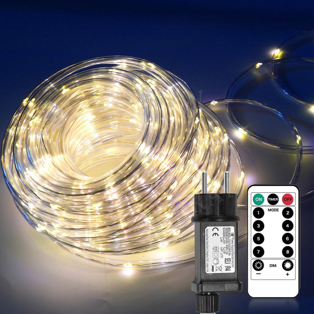 [10/20/30M + 100/200/300 LEDs] Unsere led lichtschlauch ist sehr lang, Schlauchlicht + 2Meter Stromkabel, LED Menge: 100/200/300 LEDs. LED Abstand: 10cm, Durchmesser: 7mm. Leichtrohrmaterial ist verschleißfest und korrosionsbeständig, deshlb baben Sie keine Sorge um die Korrosion