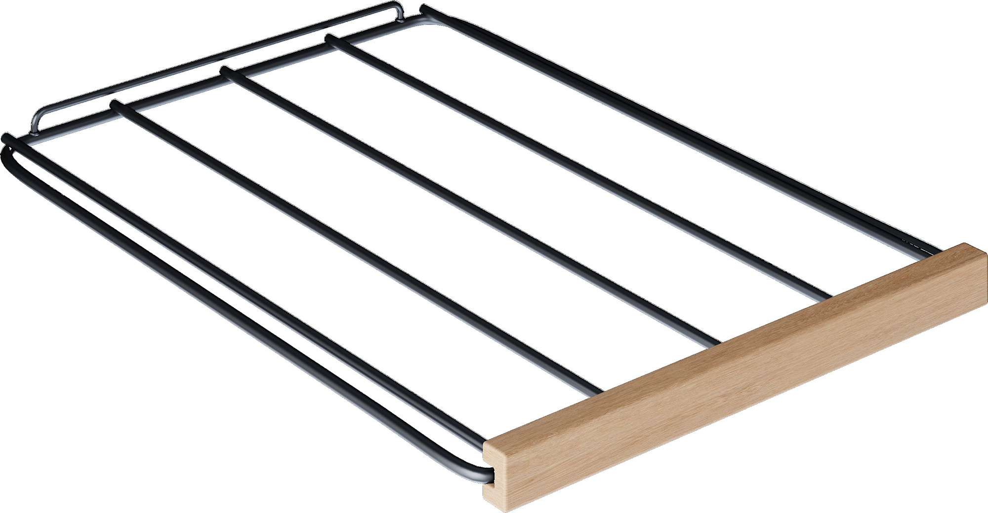 - Six (6) full size, slide-out wood-trimmed wire shelves; One (1) small slide-out wood-trimmed wire shelf