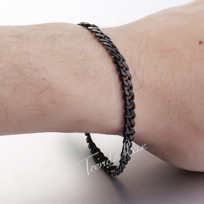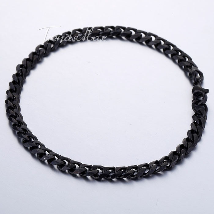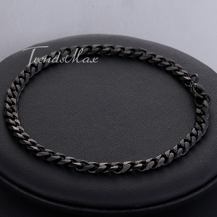 5mm 8inch MENS Chain Boys Black Curb Cuban Link Stainless Steel Bracelet Gift