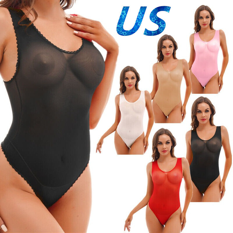 Womens See-through Mesh Crotchless Bodysuit Hollow Out Halter Backless Leotard Lingerie Nightwear.
