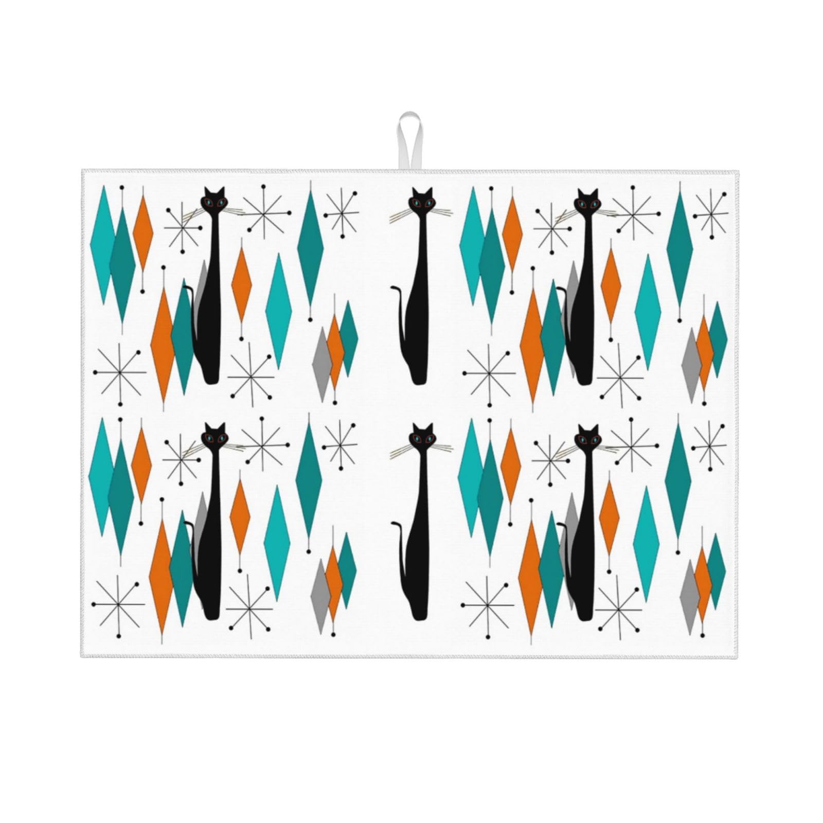 - Mid century modern decor kitchen dish drying mat for kitchen counter size is 16x18 or 18x24 inch.