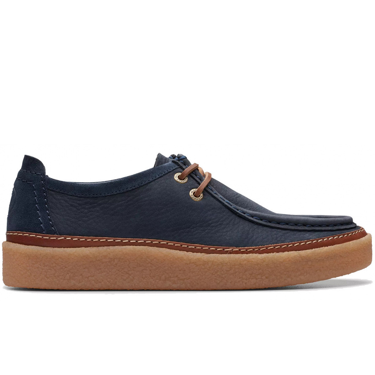 Clarks Herren in BlauBrandneu für Frühjahr/Sommer: Der Clarkwood Moc ist eine frische, minimalistische Interpretation unseres legendären Originals-Stils. Das Design kombiniert Elemente des Desert Trek und des Wallabee und wird durch einen natürlichen Rand mit Seitennähten und ein Tor-Logo an der Ferse für einen handgefertigten Look vervollständigt. Das hochwertige Obermaterial aus klassischem, marineblauem Nubukleder harmoniert perfekt mit der Sohle in Kieselkrepp-Optik.Verschluss: SchnürsenkelObermaterial: NubuklederGummisohleWeite: GInnenfutter aus Leder