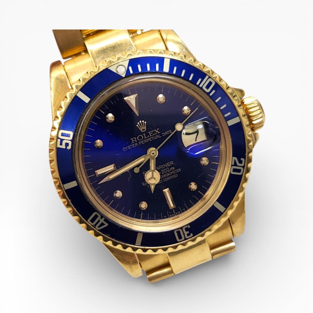 Rolex Submariner 40 mm 18K Yellow Gold Blue Nipple Dial Watch 1680 Circa 1978