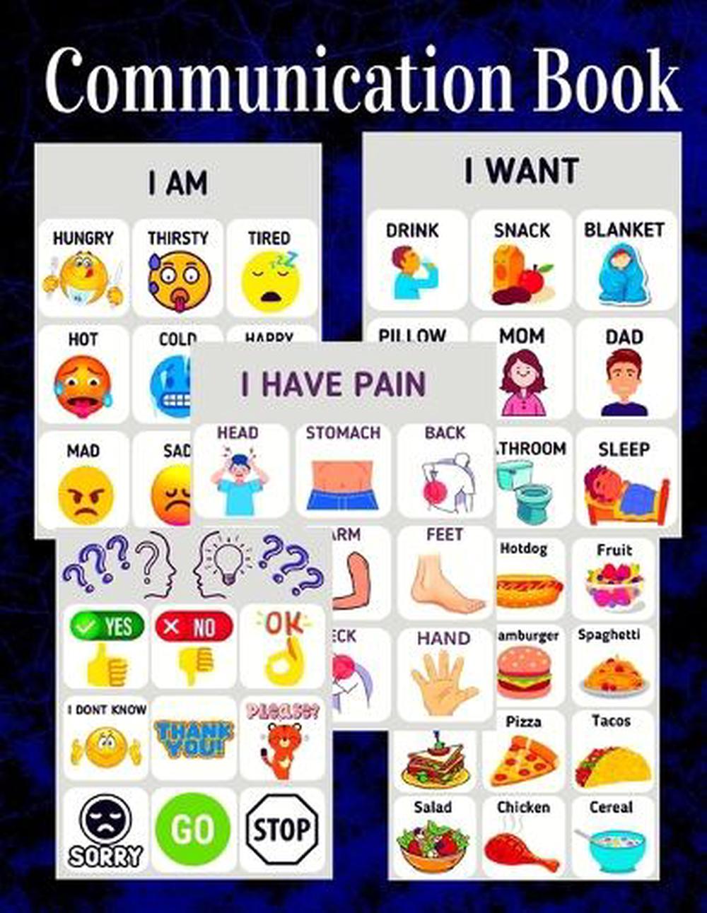 Description Communication book with pictures and words for assistance with non-verbal communication. Book Features8.5 11 Inches In Size24 Colored PagesIncludes One Blank Template To CustomizeThis Is A Great Book To Assist With Loved Ones Who Are Unable To Communicate Through Speech. Communication Is So Important In Life. It Can Be Upsetting As Well As Frustrating When We Can Not Easily Make Our Needs Known. This Book Was Made To Assist With Those Communication Needs.