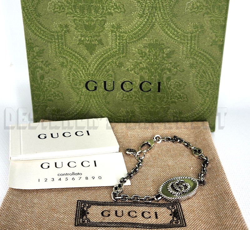 100% Authentic GUCCI Brand New Authentic genuine 925 Sterling Silver MARMONT Torchon Double G plate with Interlocking G charms chain Bracelet
