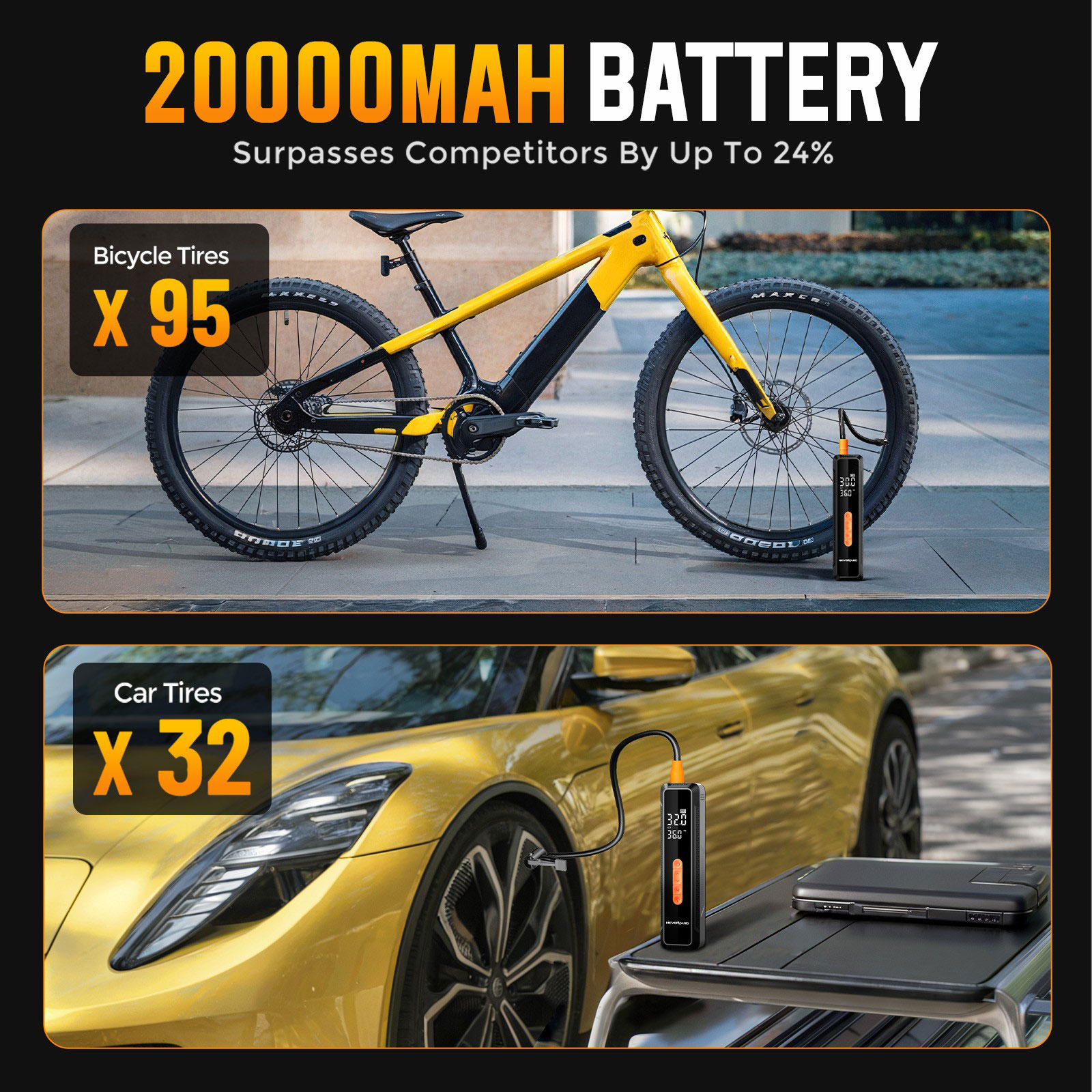 【Multiple Inflation Modes】This portable compressor features 4+N intelligent modes, perfect for cars, bicycles, motorcycles, and sports balls. Simply set the desired pressure – the pump automatically stops once reached.