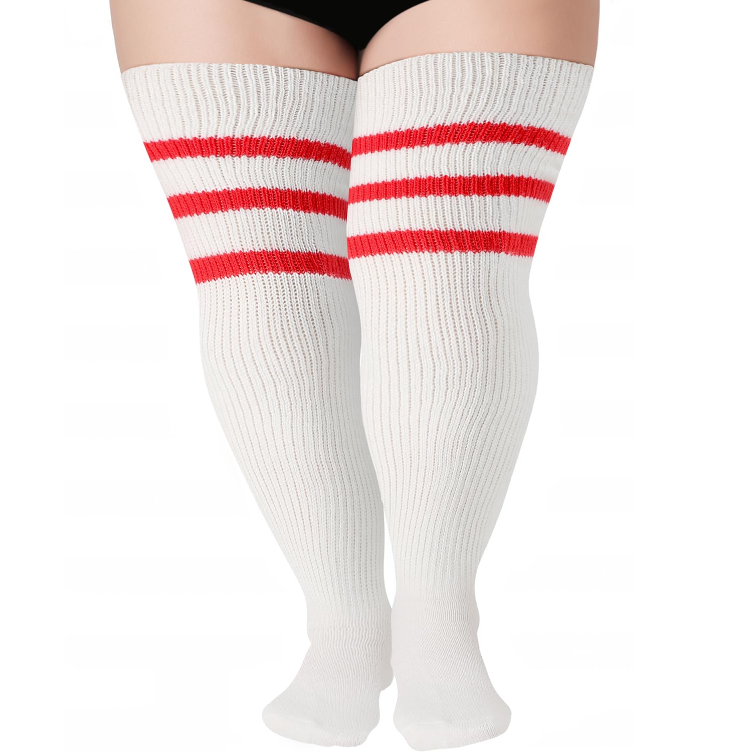 DescriptionPlus Size Thigh High Socks for Thick Thighs, Extra Long Women Striped Over Knee Stockings Leg Warmers for Winter