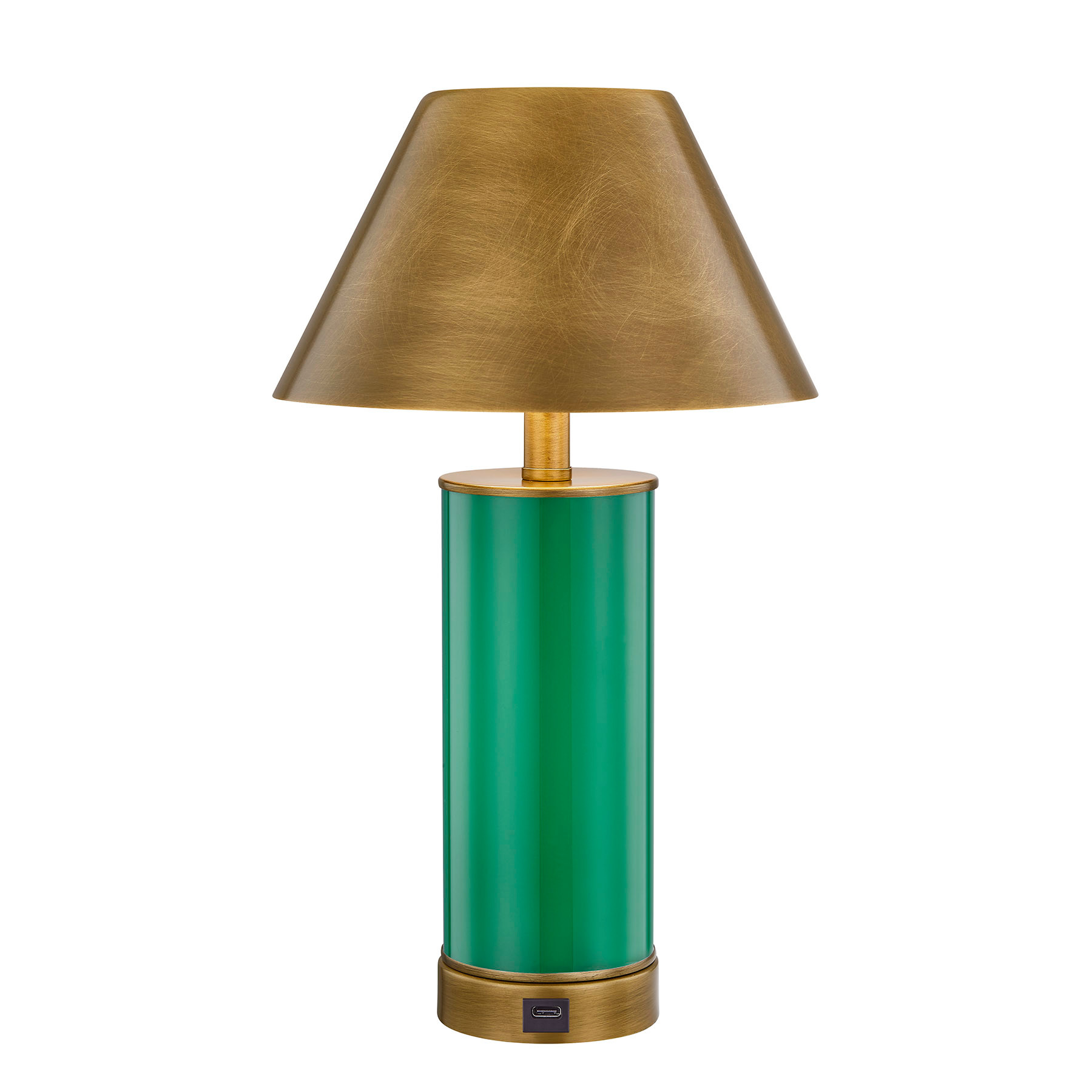 Item DescriptionThis chic Molly table lamp from Coco & Dash is portable and rechargeable, giving you a glow that can go anywhere! A plated shade adds classic charm, and the integrated LED light source brings bright, crisp illumination. Tap directly on the top center of the shade to switch the light on or off. This lamp is 12" in height and 7" in width. It gives off 240 lumens at a 3000K color temperature.