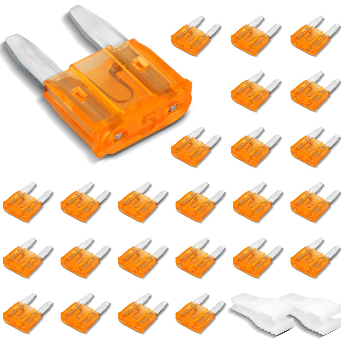 25 Pcs Mini Size Automotive Fuse, Flat Car Fuse 5A with 2 Plastic Clips for Car, Truck a