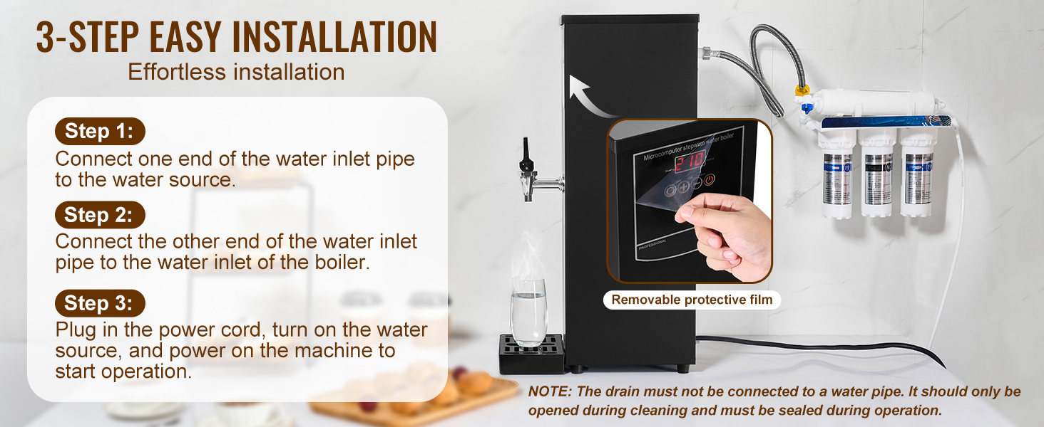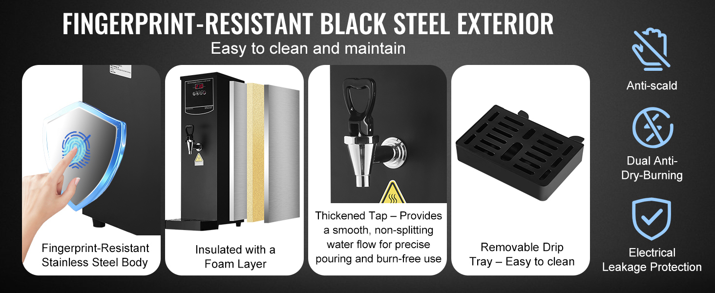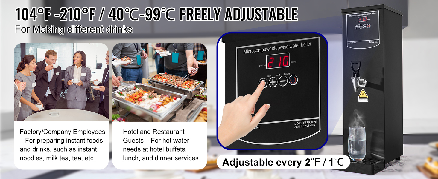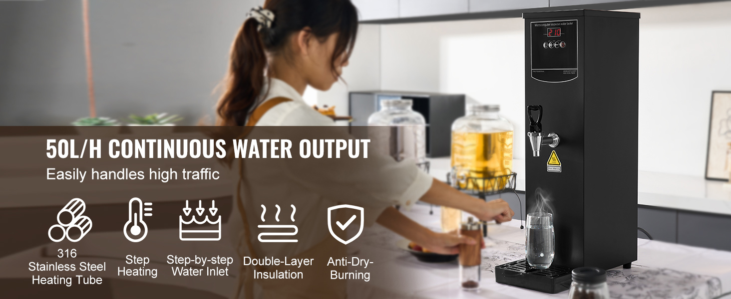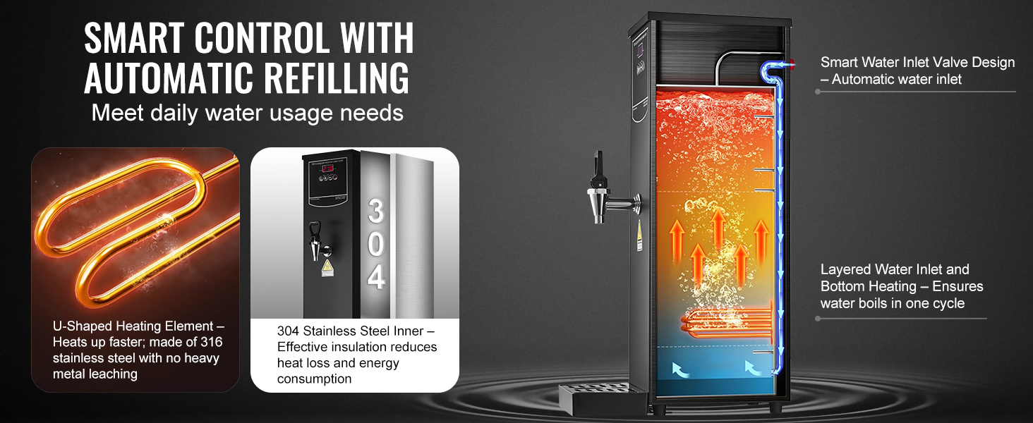 Crafted from 316 stainless steel, the heating tube provides clean, safe water free from heavy metals, promoting healthier hydration. The automatic water supply system removes the hassle of manual refills, and the sequential heating process efficiently warms only the required amount, minimizing energy use and water wastage.