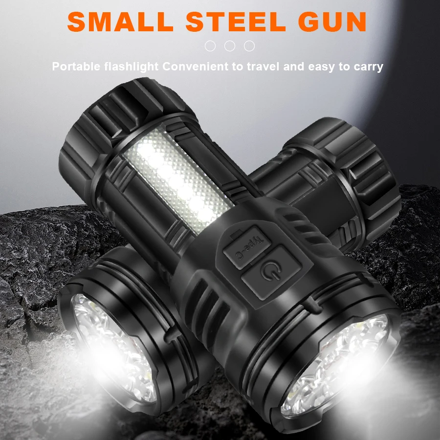 Mid mounted rubber switch, multiple light modes. COB side lights, large floodlighting.
