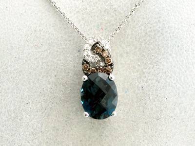 Le Vian Chocolatier Pendant featuring 2 cts. Blue Topaz, 1/20 cts. Chocolate Diamonds, 1/20 cts. White Diamonds set in 14K White Gold