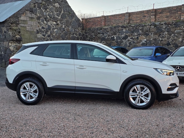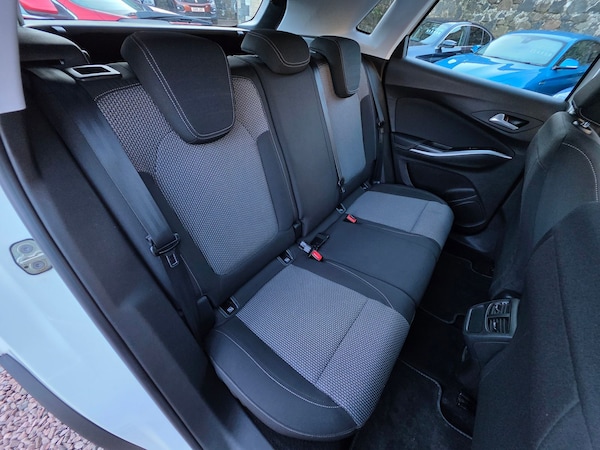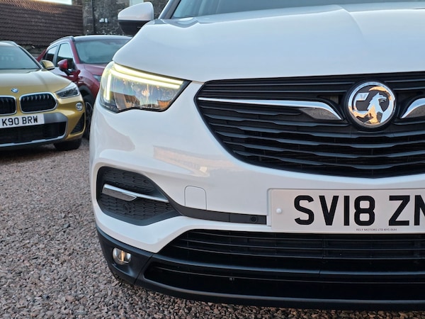 Great value Grandland X SUV with full service history 2018 VAUXHALL GRANDLAND X 1.2 TURBO SE £8750 50,400 miles Jade White 8 stamp service history Apple CarPlay and Android Auto Only 2 owners from new Low insurance group 15 LEZ compliant LED DRLs, high beam assist, cruise control, rear parking sensors, DAB, lane departure warning, dual zone climate control, speed sign recognition, auto headlights and wipers AA Cars Motor Dealer Warranty included with upgrades available Free 12 months AA Breakdown Cover Finance options available Part exchange welcome Rely Motors Ltd, Bankhead Buildings, Kinglassie, KY5 0UH relymotors.com Specification includes 17in Alloy Wheels Five Twin Spoke Silver Effect, 220V Rear Power Outlet Behind Front Seats, Anti Submarining Ramps in Front Seats, Automatic Lighting Control, Automatically Dimming Anti Dazzle Rear View Mirror, Black Door Panels with Black Modene Cloth Inserts, Body Coloured Door Handles, CSC Corner Stability Control, Centre Rear Seat Head Restraint, Chrome Effect Interior Door Handles, Cloth Front Seats, Collapsible Windscreen Wiper System, Cruise Control with Speed Limiter and Intelligent Speed Adaptation, Deactivation Switch For Front Passengers Front and Side Impact Airbags, Deformation Zones Front and Rear, Drivers and Front Passengers Sunvisors with Vanity Mirrors, Dual Seatbelt Pretensioners on Front Seats, EBD Electronic Brakeforce Distribution, Electric Parking Brake, Electronic Climate Control including Air Conditioning, Energy Absorbing Steering Column, Engine Drag Torque Control, Four Adjustable Facia Vents, Front Fog Lights, Frosted Silver Facia and Door Panel Inserts, Halogen Headlights with Manual Beam Levelling and High Beam Assist, Height Adjustable Front Seat Head Restraints, Height Adjustable Rear Seat Head Restraints, Height Adjustable and Removable Head Restraints, Hydraulic Brake Assist, Inertia Reel Lap and Diagonal Seatbelts, Interior Courtesy Light Operated By Door Switches, Intermittent Rear Window Wash Wipe, Lane Departure Warning, Load Limiters Outer Rear Seatbelt Retractors, Pretensioners on Outer Rear Seatbelt Retractors, R4.0 IntelliLink Touch Screen Infotainment System, Rear Fog Light, Rear Parking Distance Sensors, Rear Passenger Compartment Heating Ducts, Rear Spoiler, Reinforced Passenger Safety Cell, Remote Control Security Alarm System, Reversing Lights, Seats Rear Split Folding 60 40,