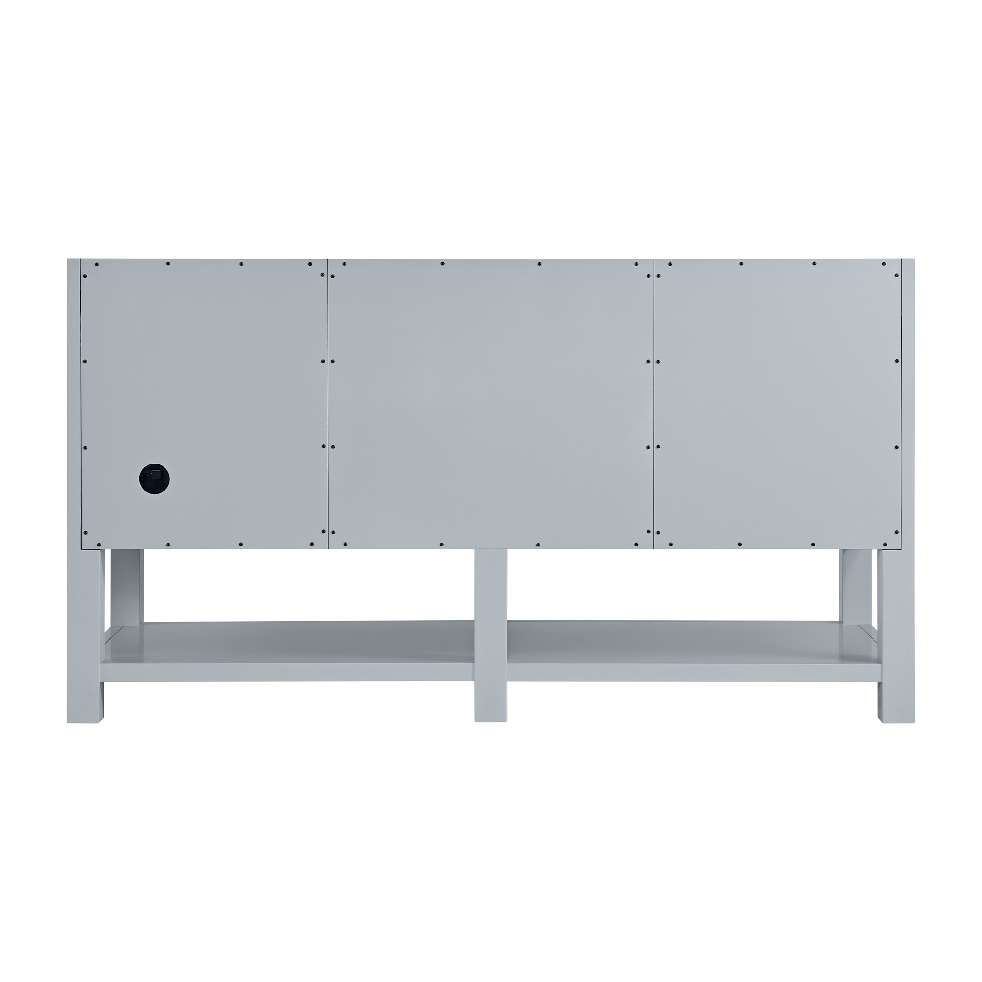 - Interior shelves are adjustable and removable with pre-cut channels to allow for plumbing drain pipes