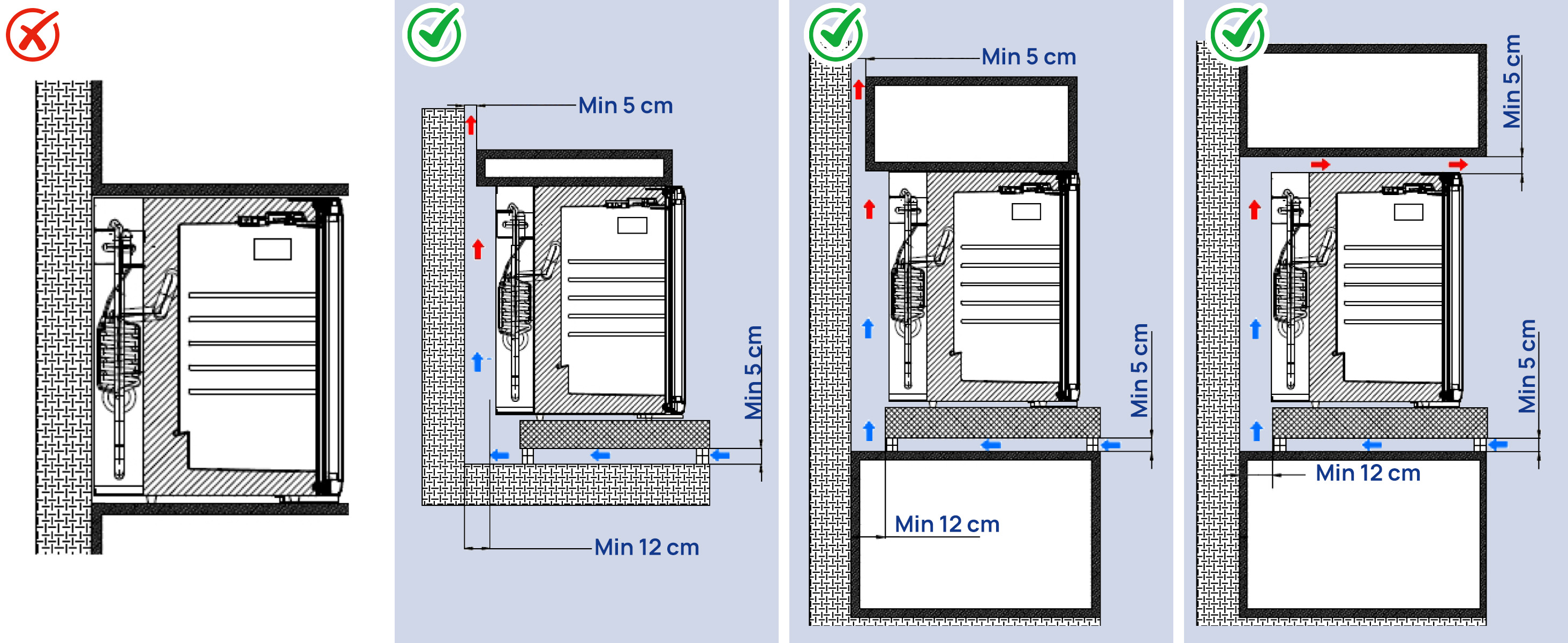 Veuillez confirmer la taille d'installation avant de commander et réserver l'espace pour la ventilation de ce réfrigérateur.Si vous devez l'utiliser dans un camping-car ou un camion, installez-le bien dans le véhicule.
