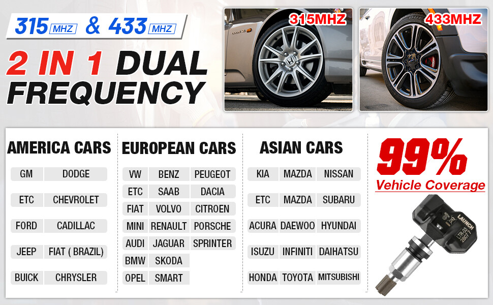 * 99% COVERAGE: Featuring the latest and most comprehensive coverage of 99% OE sensors on the market, and up to 99% of North American, European and Asian vehicles, it nearly fits all types of wheels on the road.