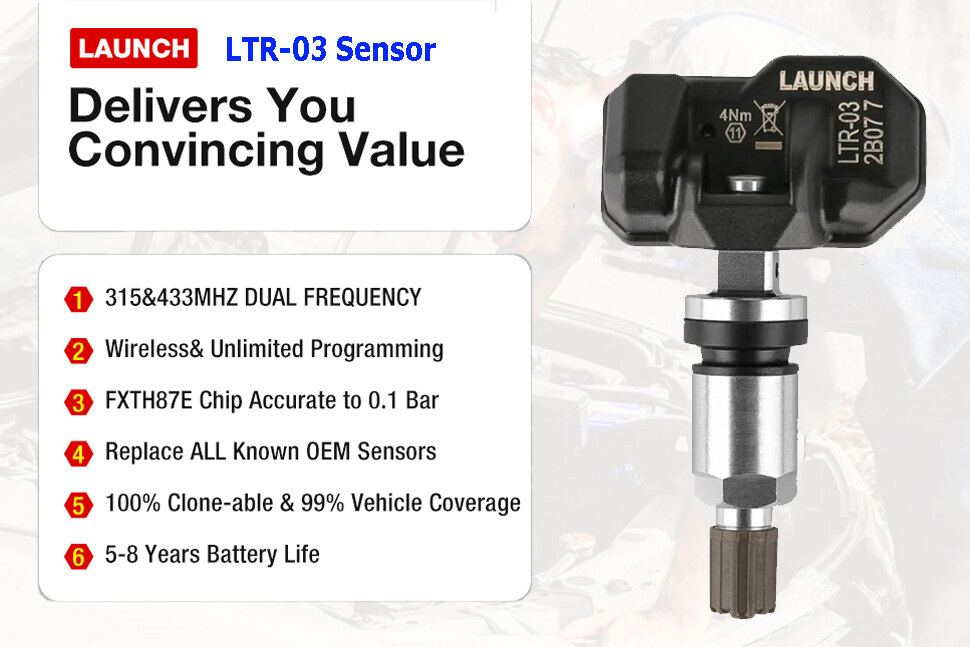 Extensive Vehicle Coverage for 99% America/European/Asian Vehicles >>> Launch LTR03 TPMS Sensor