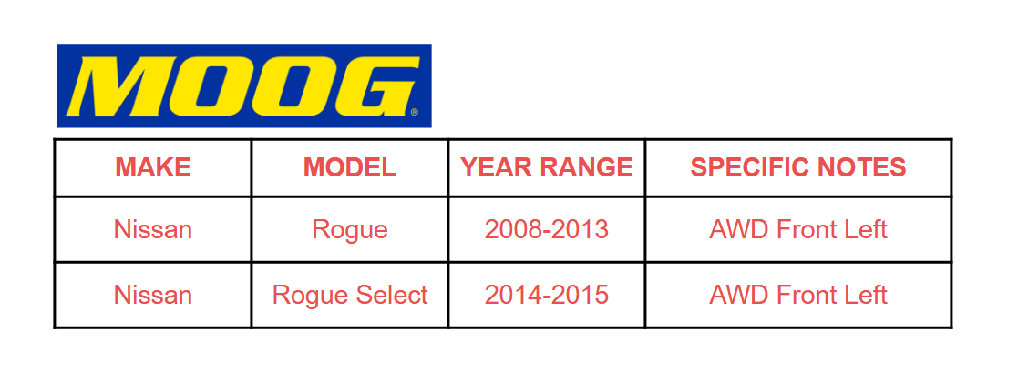 AWD MOOG Front Driver CV Axle for 2008 2009 2010 2011 -2015 Nissan Rogue Select