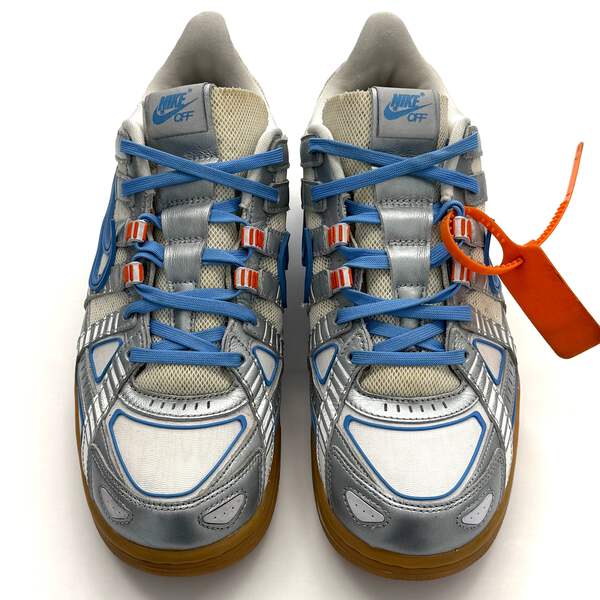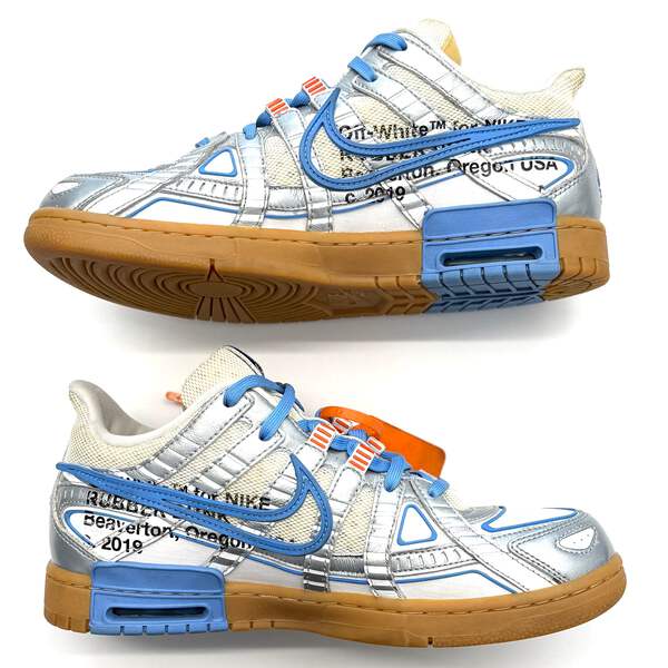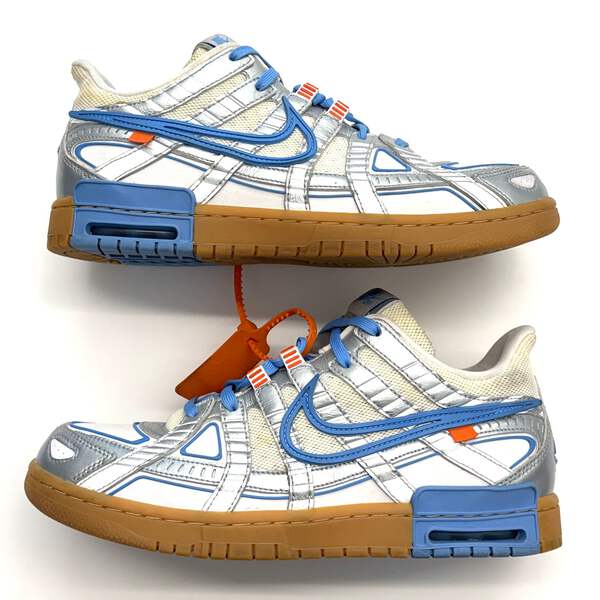 The Nike Air Rubber Dunk Off-White UNC is a highly sought-after collaboration between Nike and Virgil Abloh's Off-White. This iconic silhouette features the signature University Blue colorway with deconstructed design elements and premium materials that define the Off-White aesthetic.