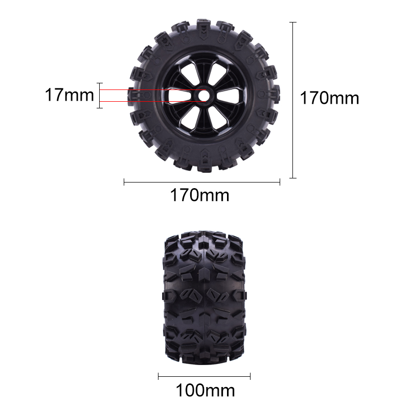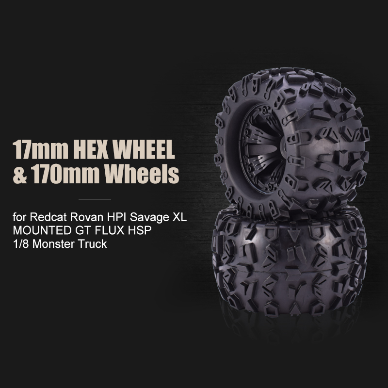 2pcs 17mm HEX WHEEL & 170mm Räder Reifen für Redcat Rovan HPI Savage XL MONTIERT GT FLUX HSP ZD Racing 1/8 Monster Truck.