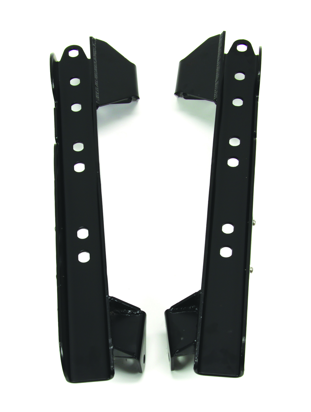 TeraFlex TJ: Lower LCG Long Arms (NOT INCLUDED) and Lower LCG Long Arm Frame Brackets provide complete alignment adjustability and dependability for maximum performance on TJ Wrangler/Unlimited models with 3–5” lifts. \nCAD-engineered TeraFlex TJ: (Pro) LCG (4-Link) Long Arm Frame Brackets and triangulated Rear Upper Pro LCG 4-Link Long Arm Axle Truss (NOT INCLUDED) are designed for maximum strength. The 1/4”-thick steel brackets are CNC laser cut and precision bent for accurate fitment. Frame Brackets locate using the factory belly pan skid plate bolt holes then stitch welded. These are the same components found in our high-end Enduro LCG and/or Pro LCG Long Arm Suspension Systems. \nBy streamlining the frame-end mounting points, we were able to incorporate both front and rear mounts in the Lower LCG Long Arm Frame Brackets thus simplifying installation while maintaining a factory appearance. \nMUST be used with adjustable Lower LCG Long Arms (TJ SWB: # 1447702 x 2) (LJ LWB: Front: # 1447702) (LJ LWB: Rear: # 1447704) — NOT INCLUDED. \nCan be added to an existing suspension lift.
