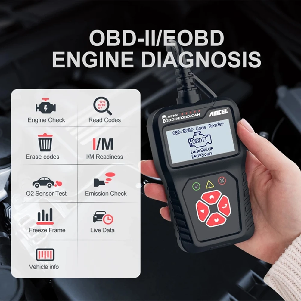 Ancel AS100 OBD2 Professional Scanner Diagnostic Tools Engine Analyzer Code Reader OBDII Diagnostic Auto