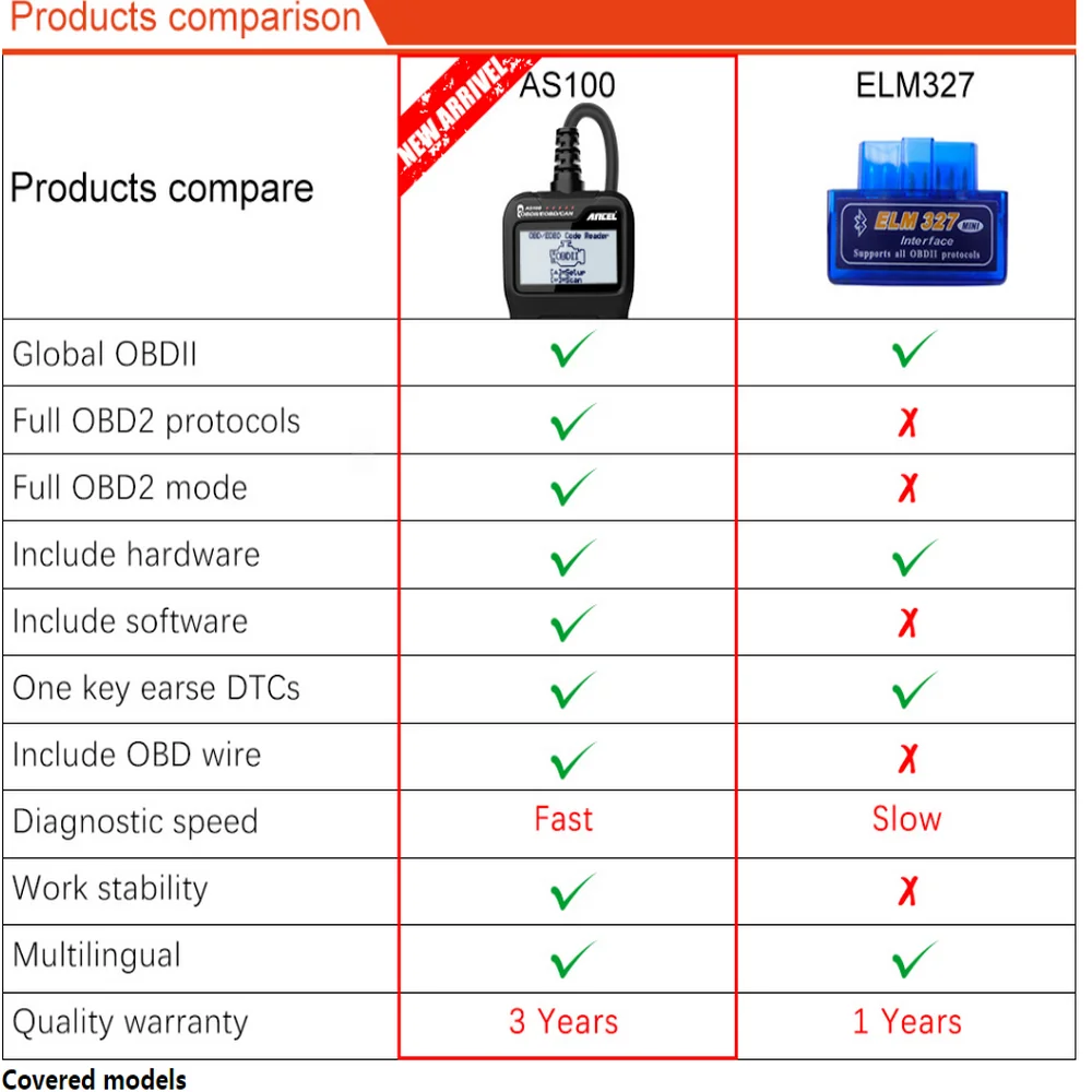 AS100 OBD2 Scanner Covered 1000+ Models