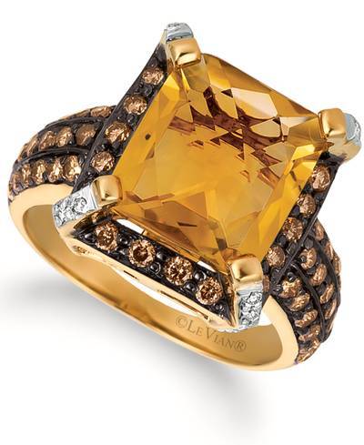 Le Vian Grand Sample Sale Ring featuring 5 cts. Cinnamon Citrine, 3/4 cts. Chocolate Diamonds, 1/10 cts. Vanilla Diamonds set in 14K Yellow Gold
