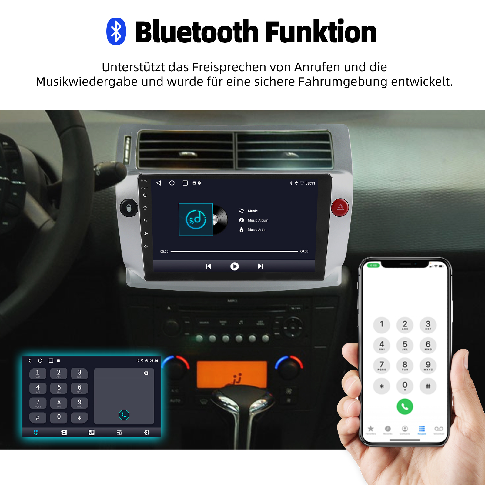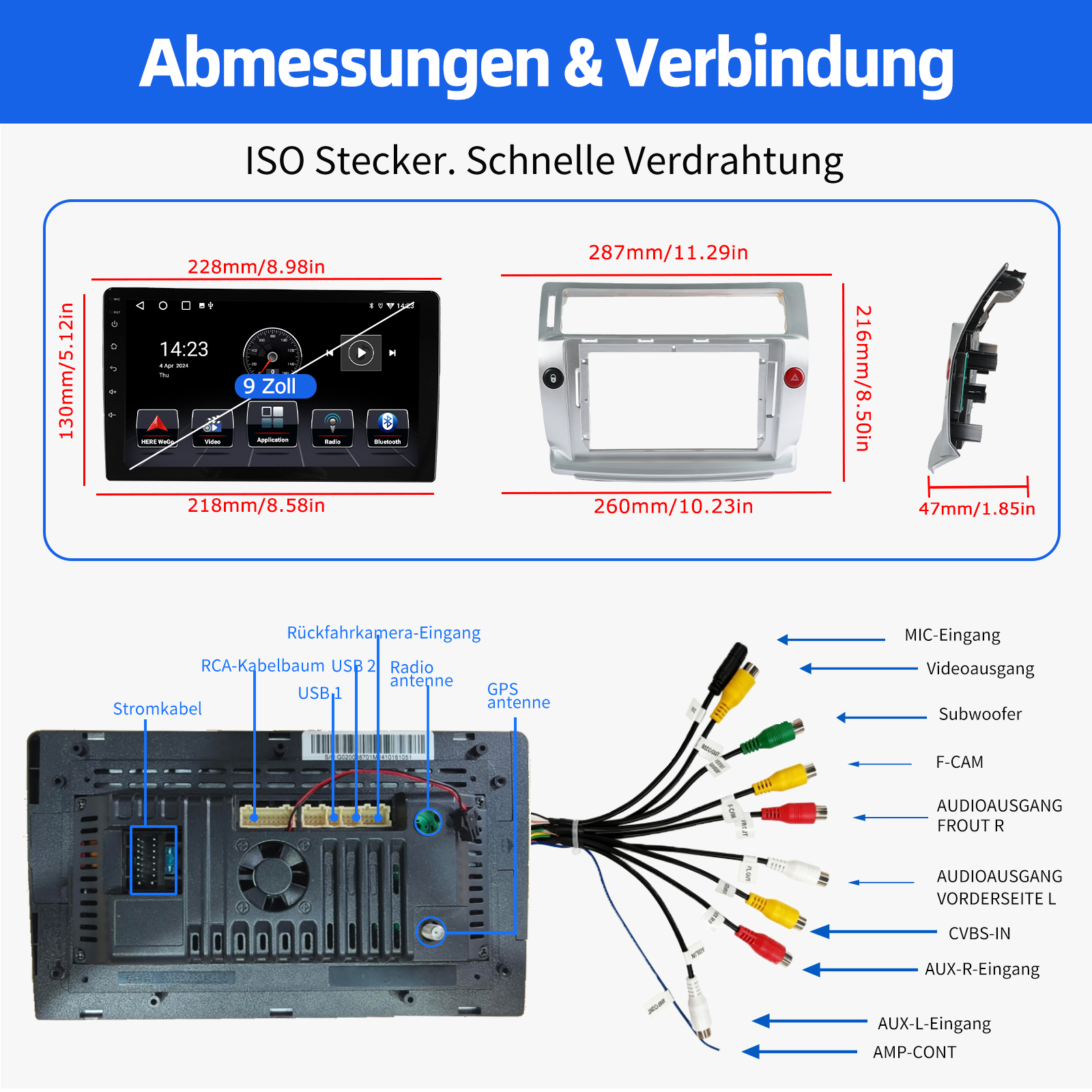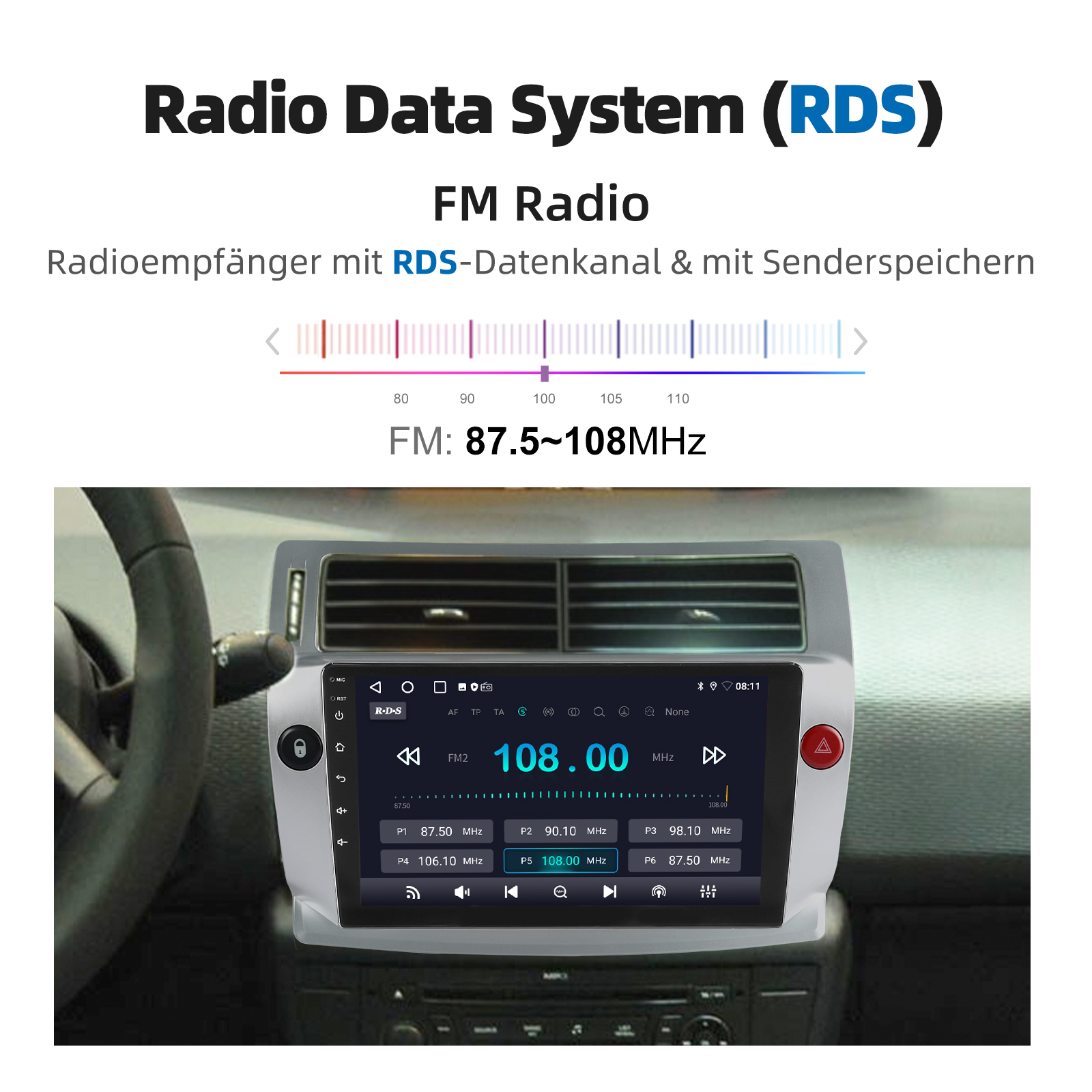 RDS/FM-Radio und Bluetooth und ASP Sound: Unterstützt Bluetooth 4.1, mit integriertem Mikrofon, damit Sie während der Fahrt freihändig telefonieren können. Unterstützt den Zugriff auf das Telefonbuch, die Musikwiedergabeschnittstelle usw. RDS unterstützt. Sie können 18 FM Radiosender speichern. Eingebauter ASP-Chip. Unterstützt 32-Band-EQ-Einstellung, die nach Ihren persönlichen Vorlieben eingestellt werden kann.Der Ihrem Originalsound sehr ähnlich ist.4 x 45W Verstärker, Surround-Sound und Subwoofer-Ausgang.