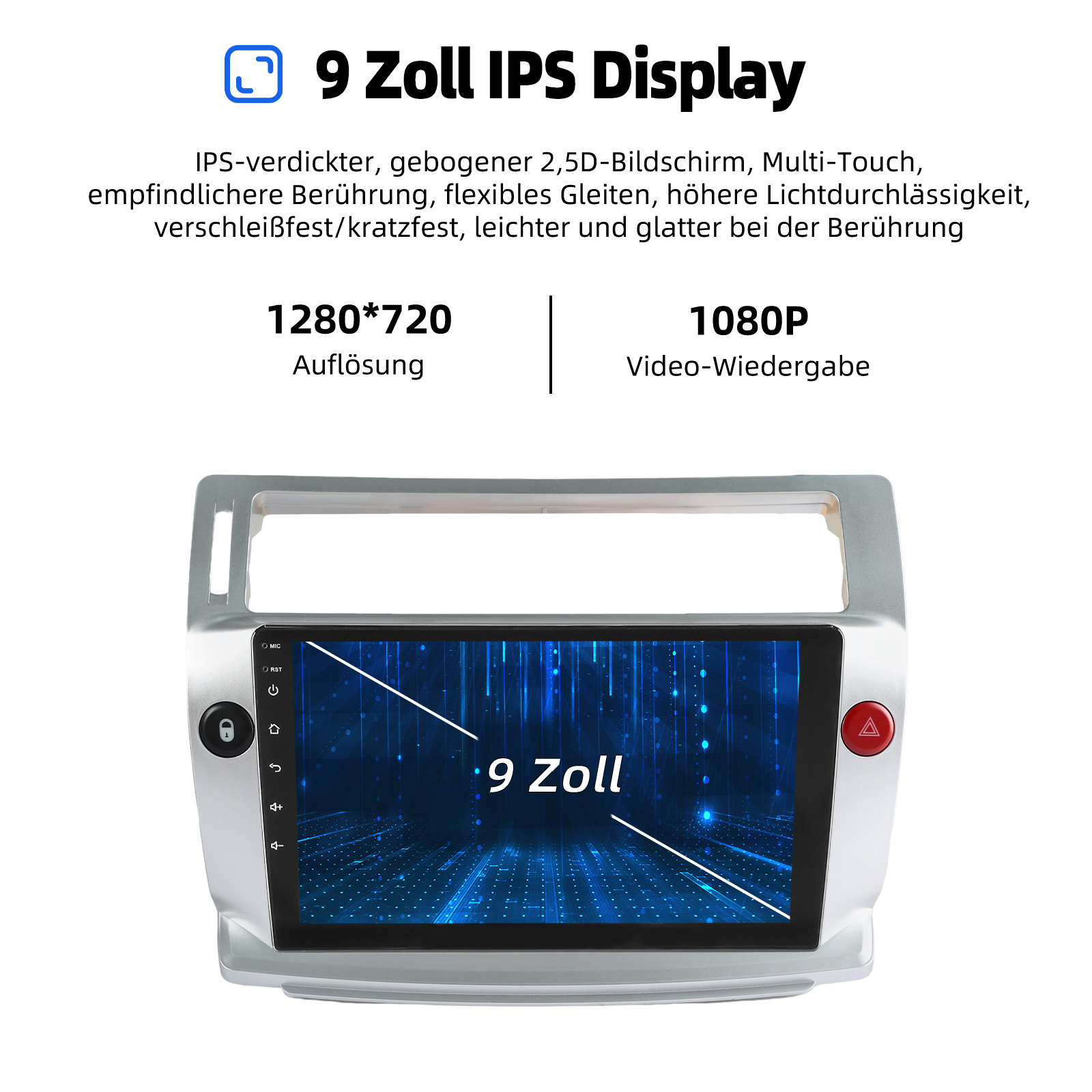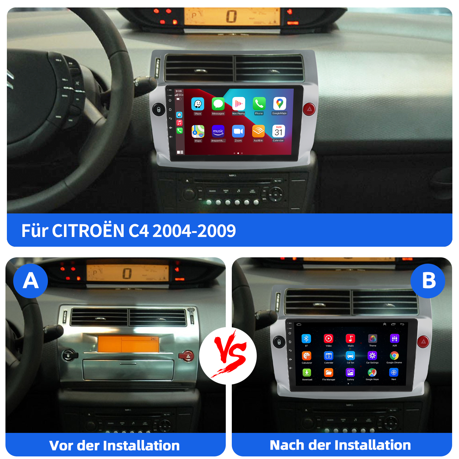 9 Zoll Android 15 Autoradio Für Citroen C4 2004-2009: Das Android Autoradio mit 9" 1280* 720 HD kapazitivem Touchscreen, 4GB RAM und 64GB ROM ermöglicht das Herunterladen Ihrer Lieblings-Apps und -Videos, damit das Autofahren nicht mehr langweilig wird. Kein zusätzlicher Rahmen, kein Kabelwechsel, Plug and Play. Es wird mit Canbus geliefert und unterstützt die meisten