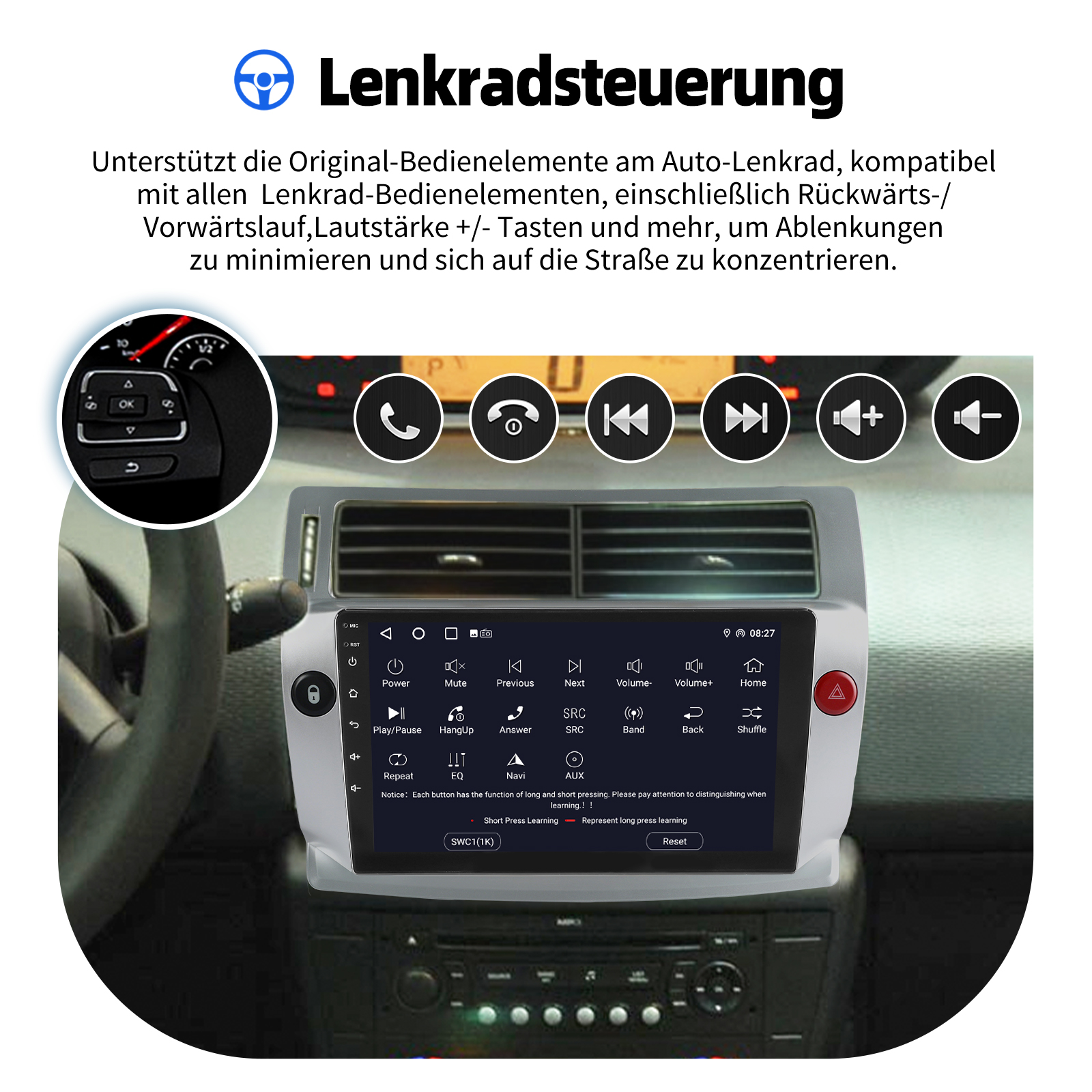 Originalfunktionen: Lenkradsteuerung, Rückwärtssionale und Lesen von Origimputerdaten usw.