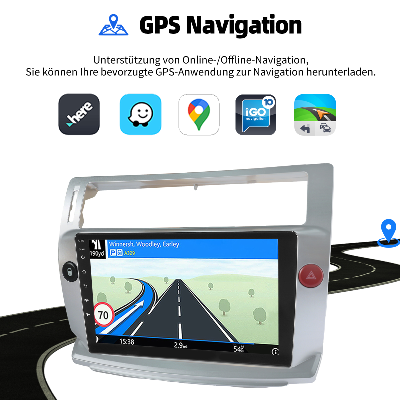 AHD Rückfahrkameraeingang und Lenkradkontrolle: Nach dem Anschluss an die Rückfahrkamera. Das Radio zeigt automatisch das Rückfahrbild an, sobald Sie den Rückwärtsgang einlegen. Machen Sie Ihr tägliches Rückwärtsfahren sicherer. Unterstützt AHD-Kamera. Unterstützt die originale Auto-Lenkradsteuerung , um das Fahren bequemer und sicherer zu machen.