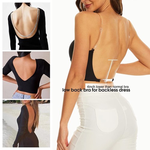 Low Back Invisible Bras for Women Push Up Backless Bralette Deep U Plunge Halter