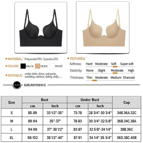 -Low cut seamless bra features with a deep plunge u shape center line, invisible under deep neckline outfits.