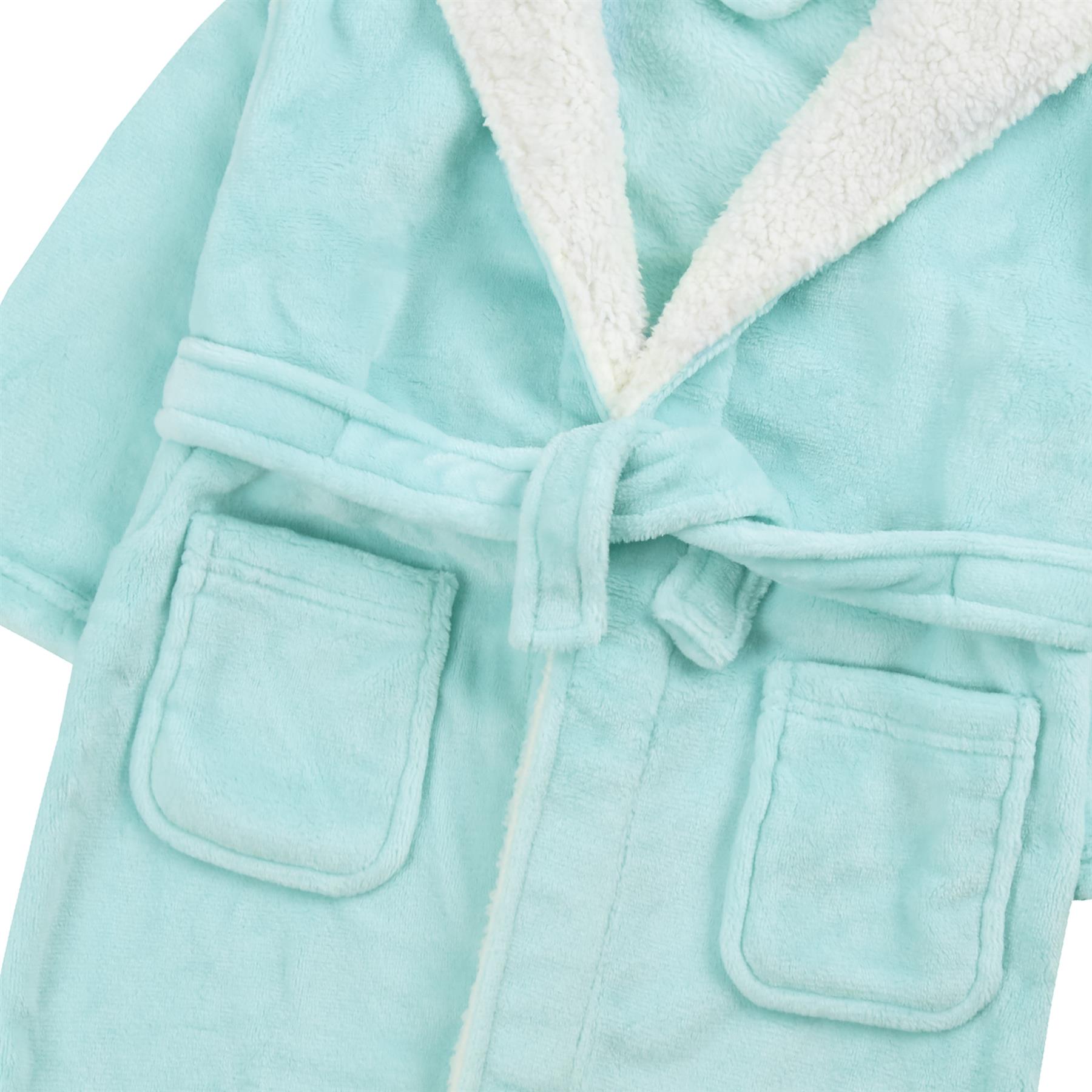 Coral fleece robe with sherpa trim. Made from the softest plush material, perfect for keeping warm and fuzzy! The material benefits from being super soft against the skin, warm and easy to care for.