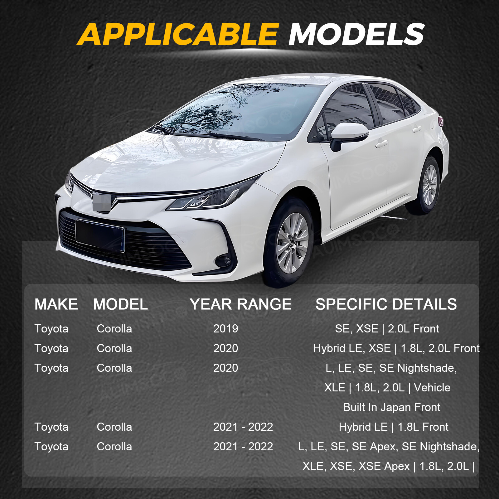 Note: 2020-2024 Toyota Corolla fit the model Built in Japan