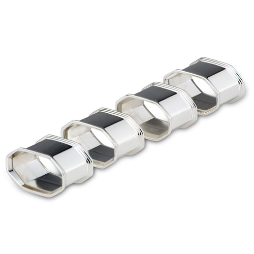 Serviettenringe 4er Set Silber Achteckig f. Stoffservietten Hochzeit gravierbar