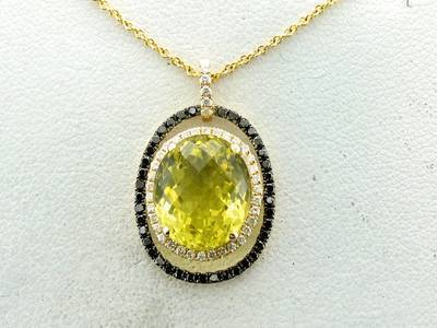 Le Vian Grand Sample Sale Pendant featuring 4 3/4 cts. Lime Quartz™, 1/5 cts. Blackberry Diamonds , 1/6 cts. Vanilla Diamonds set in 14K Yellow Gold