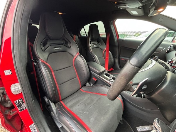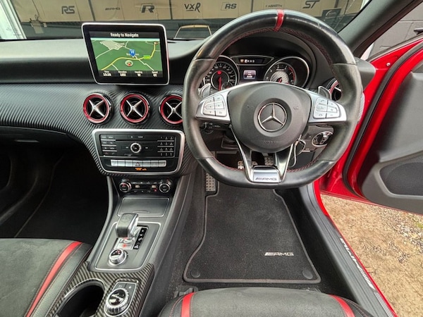 This 2016 Mercedes Benz A45 AMG boasts exceptionally low mileage for its age, having covered just 56,500 miles. This premium hatchback, registered in 2016, features a powerful 2.0L petrol engine paired with a four wheel drive system, ensuring dynamic performance. It meets Euro 6 emissions standards and comes with a 3 month warranty for your peace of mind. The MOT is valid until September 2026, and while the service history is partial, the last service was completed on 20th March 2026 at 56,485 miles. Notable features include the AMG Aerodynamics Package, an AMG Performance exhaust system for an enhanced driving sound, and the COMAND Online satellite navigation system. Comfort is assured with Thermotronic two zone automatic climate control and rear parking sensors with parking assistance. The A45 AMG stands out with its impressive acceleration, achieving 0-62mph in a remarkable 4.2 seconds, a figure that highlights its superior performance compared to many other vehicles in its class. This capability, combined with its generous boot space, makes it a practical yet exhilarating choice. The AMG trim level further enhances the sporty character of this already potent Mercedes Benz. AWARD-WINNING DEALERSHIP 2025! Proudly an Award-Winning Dealership by Motor Trader UK. We?re a family-run independent business based in Essex, known for our 5-star customer service and range of quality vehicles. Whether you?re searching for a head-turning modified hot hatch or a luxury SUV, our hand-picked stock features some of the finest vehicles available on the market today. We pair this with unbeatable finance packages to help you drive away in your dream car ? without compromise. With a 5-star Google Review rating, our reputation is built on consistently delivering exceptional service before, during, and long after the sale. Our customers are at the heart of everything we do ? and that?s why we?re award winners. We also work alongside the UK?s most decorated warranty and breakdown providers, offering you three months of free cover as We can source your perfect vehicle within days if it?s not already in stock. Discover why were award-winning, visit us today..12V Socket, 12V Socket in Luggage Compartment, 18in Alloy Wheels - AMG 10 Spoke Design - Painted in Titanium Grey with High-Sheen Finish, 8-inch Frameless Tablet-style Colour Display, ABS - Anti-Lock Braking System with BAS - Brake Assist, AMG A-wing Front Air Intake, AMG Bodystyling - Front and Rear Apron and Side Skirts, AMG Diffuser-Look Rear Apron, AMG Drive Unit including AMG Dynamic Select Controller, AMG Dynamic Select with a Choice of Driving Modes - Comfort-Sport-Sport Plus and Individual, AMG High-Performance Brake System, AMG Instrument Cluster with Colour Display and AMG Menu, AMG Sports Exhaust System with Two Chrome-plated Tailpipes, AMG Sports Suspension, ATTENTION Assist, Active Bonnet - Pedestrian Safety Measure which Detects an Impact and Raises Bonnet by 65mm, Active Braking Assist, Adaptive Brake Assist with Hold Function and Hill Start Assist, Adaptive Brake Lights, Air Vents with Black Surround - Red Insert and Cruciform Nozzle, Airbags - Dual Stage - Driver and Front Passenger, Airbags - Head and Sidebags - Driver and Front Passenger, Airbags - Windowbags for Driver and Front Passenger, Alarm System with Immobiliser and Interior Protection - Thatcham Category 1, Audio 20 Radio-CD-MP3 Compatibility, Auto Dimming Rear View Mirror, Automatic Child Seat Recognition Sensor, Beltline Strips - Chrome, Bodystyling - Side Skirts - Body-Coloured, Brake Calipers - Front and Rear Painted Red with AMG Lettering on Front and Rear Calipers, Brake-Pad Wear Warning Indicator, Brushed Stainless Steel Sports Pedals with Rubber Studs, Bumpers - Body Coloured, Centre Armrest - Front with Stowage, Childproof Locks - Manually Operated for Rear Doors and Electrically Operated for Rear Power Windows, Controller on Centre Console with Chrome Surround, Crash-Responsive Emergency Lighting, Cruise Control with SPEEDTRONIC Variable Speed Limiter, Cup Holder - Double - Front, DAB Digital Radio Tuner, Direction Indicators with Lane-Changer Function, Door Handles - Body Coloured, Door Mirrors - Electrically Adjustable and Heated with Integrated LED Indicators, Door Mirrors - Electrically Folding and Auto-Dimming on Drivers Side, Door Mirrors - Mirror Housing in Body-colour, Drivers Kneebag, ESP - Electronic Stability Programme - Three-Stage, ESP - Electronic Stability Programme with ASR - Acceleration Skid Control, ESP Cornering Dynamics Assist, Electric Parking Brake, Electric Windows - 4, Electronic Key - Chrome Surround with AMG Crest for Master Key, Executive Pa