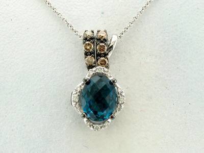 Le Vian Chocolatier Pendant featuring 2 cts. Blue Topaz, 1/4 cts. Chocolate Diamonds , 1/15 cts. Vanilla Diamonds set in 14K White Gold