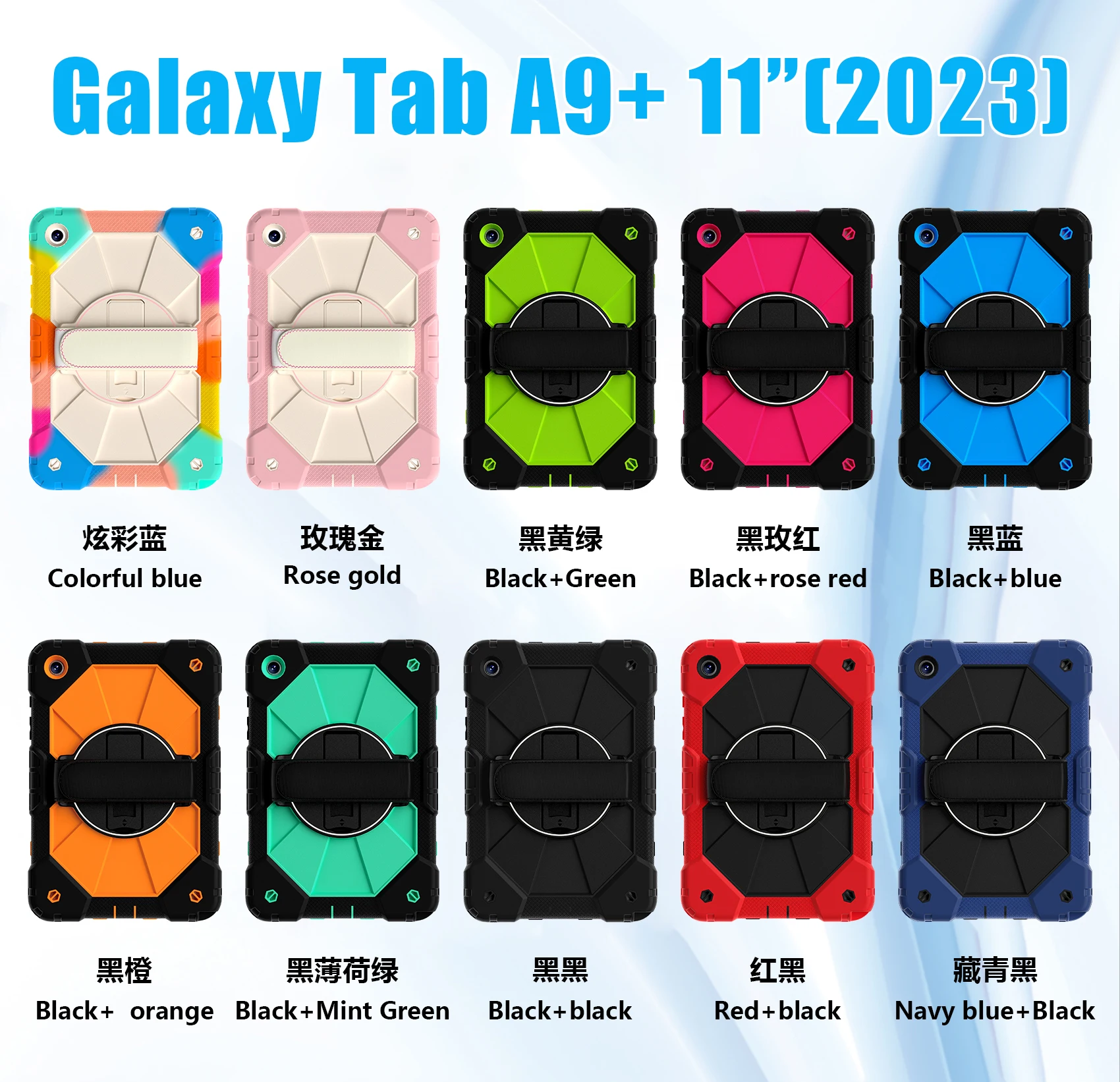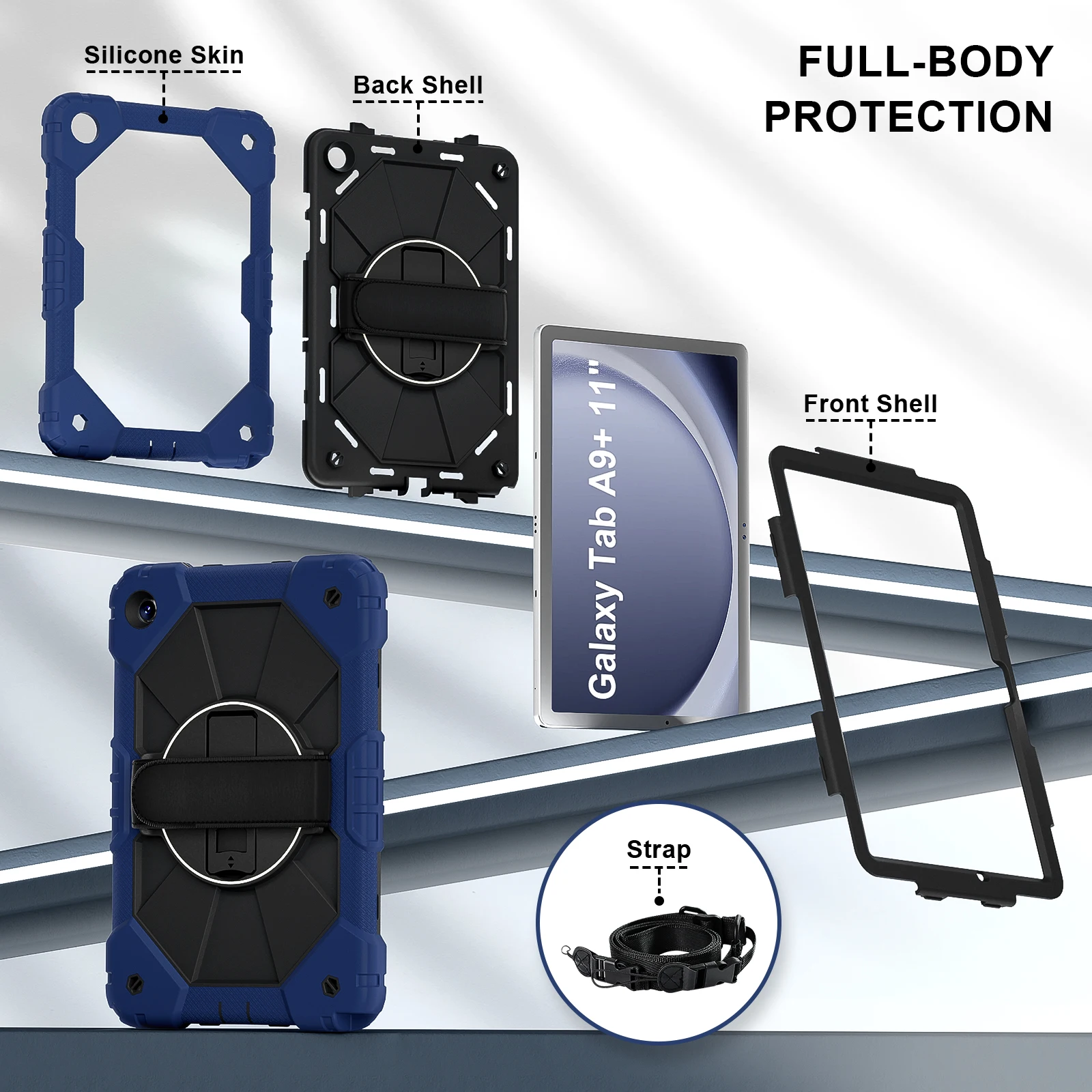 Rugged Case for Samsung Galaxy Tab A9 Plus 11" (2023) | Shockproof Stand Cover with Hand Strap & Shoulder Lanyard | Heavy Duty Kids Armor
