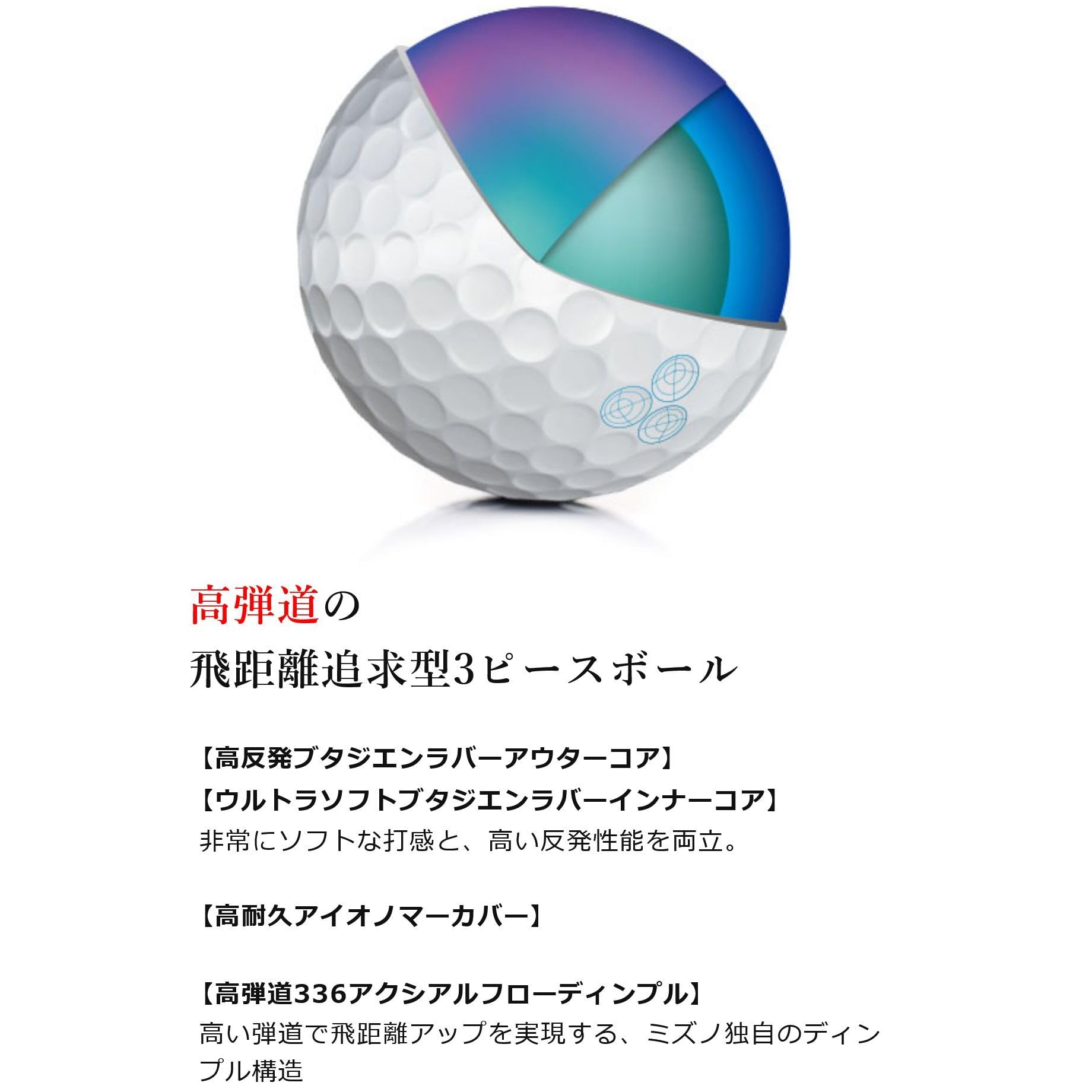 Featuring 336 Mizuno's unique Axial Flow Dimple design, this 3-piece golf ball offers high trajectory performance, a soft feel, and distance-focused design.