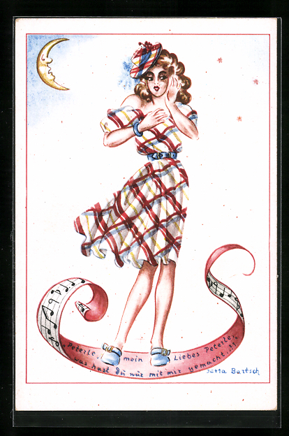 Künstler-AK sign. Jutta Bartsch: Peterle mein Liebes Peterle, was hast Du nur mit mir gemacht??