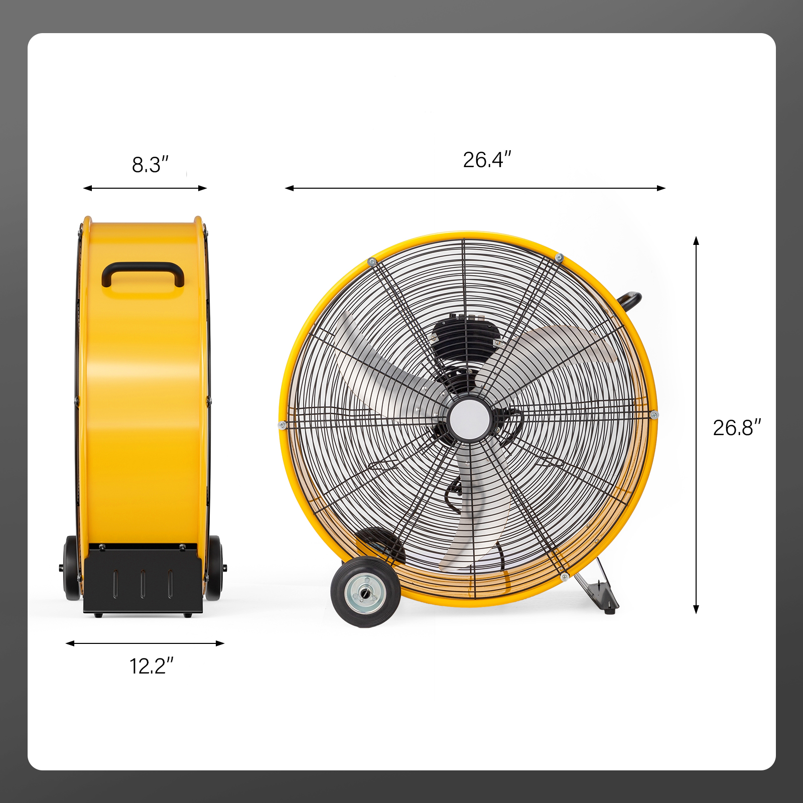 【Premium Heavy-Duty Motor for Reliable Performance】Built to last, this heavy-duty drum fan is powered by a high-quality copper-wire motor, ensuring stable, long-lasting operation even under heavy use. UL-certified for safety and durability, its all-metal construction enhances sturdiness while delivering smooth, high-speed airflow—perfect for demanding environments