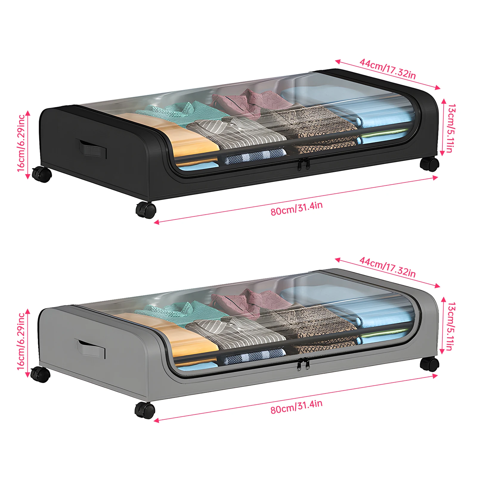 【Large Capacity】Each underbed storage bin has 33kg/72.7lbs strong load capacity and large size: 80*44*16cm/31.5*17.3*6.3in. The organizer bins perfect for under beds, closets, on shelves or under sofa and corner. A good choice for room organization and storage.
