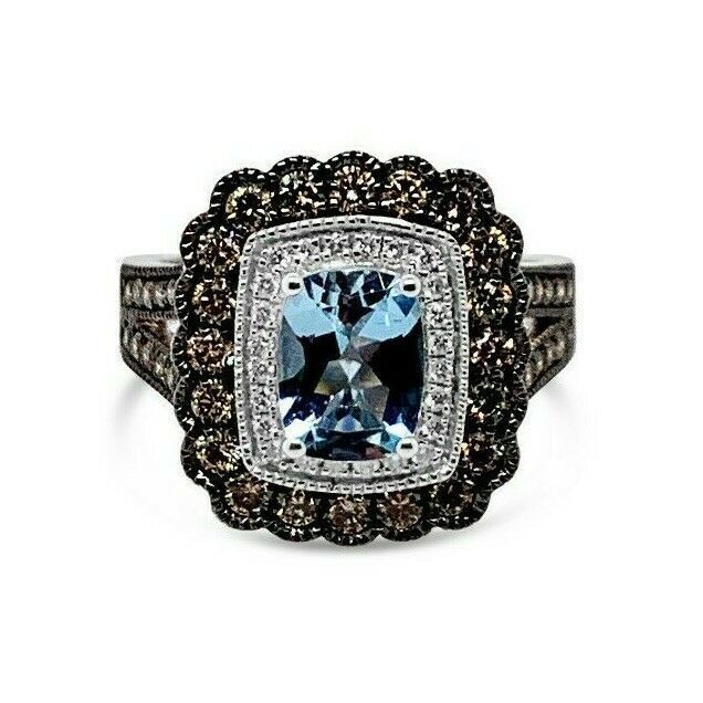 Le Vian Chocolatier® Ring featuring 1 1/6 cts. Sea Blue Aquamarine®, 7/8 cts. Chocolate Diamonds® , 1/8 cts. Vanilla Diamonds® set in 14K Vanilla Gold®